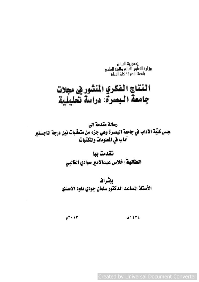 $aPUBLISED LITERATURE IN THE JOURNALS OF THE UNIVERSITY OF BASRAH : $bAn analytical STUDY