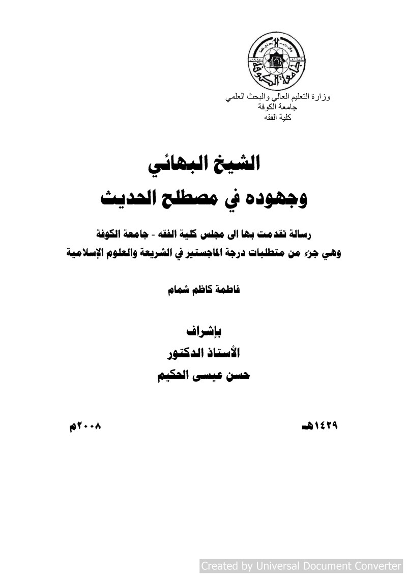 الشيخ البهائي وجهوده في مصطلح الحديث /