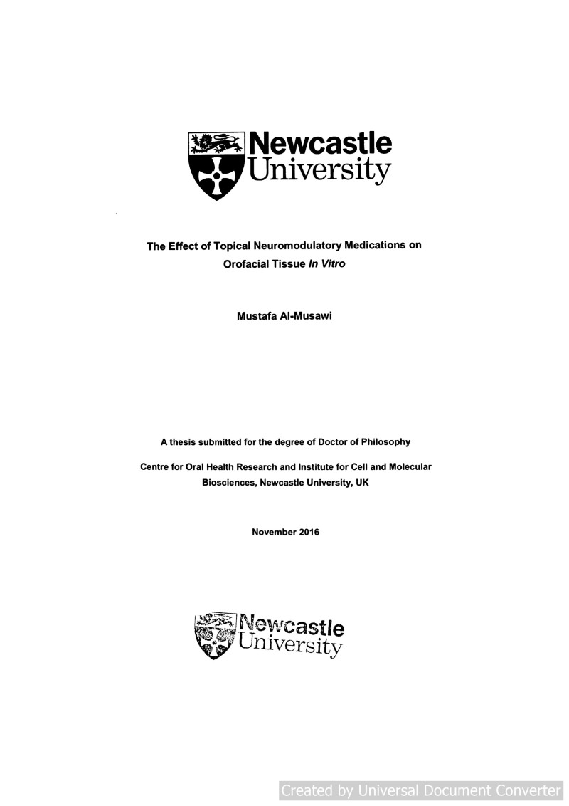$aNewcastle Universlty (Upon Tyne, United kingdom). $bCentre for Oral Health Research and Institute for Cell and Molecular, $edegree granting institution.