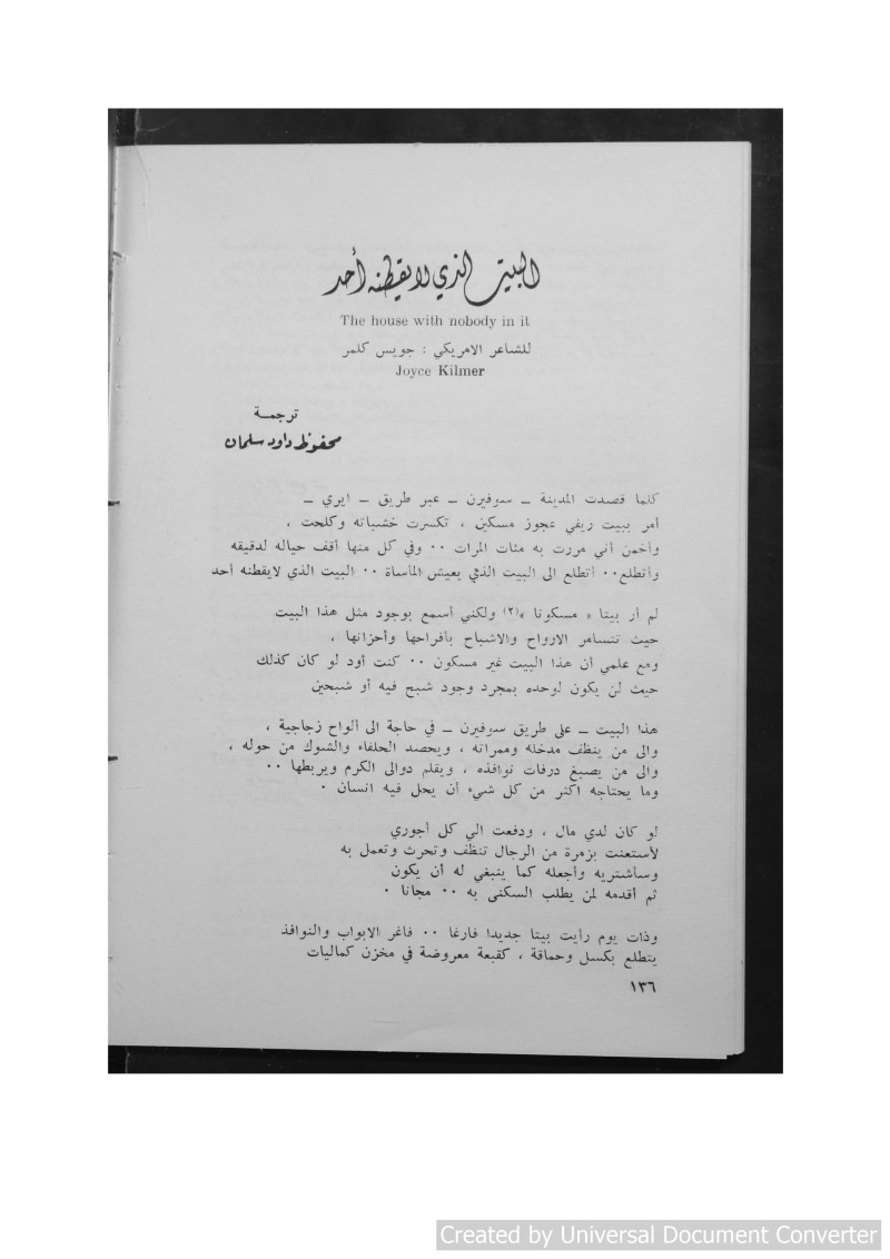 للشاعر الامريكي جويس كلمر ؛ ترجمة محفوظ داود سلمان.