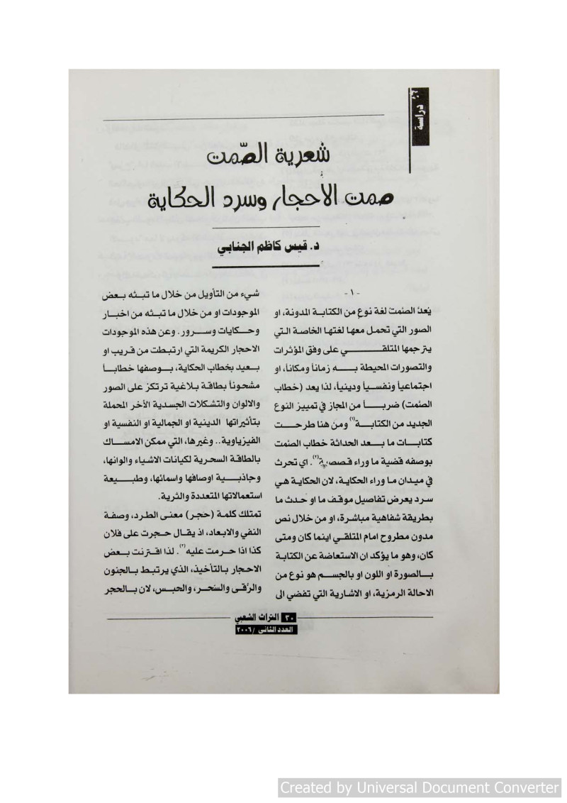 التراث الشعبي : مجلة ثقافية شهرية تعنى بشؤون الفولكلور