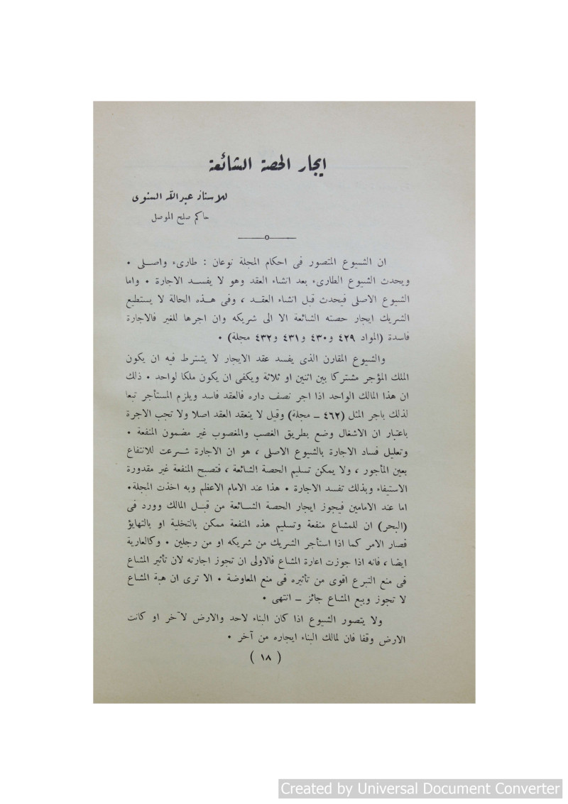ايجار الحصة الشائعة /