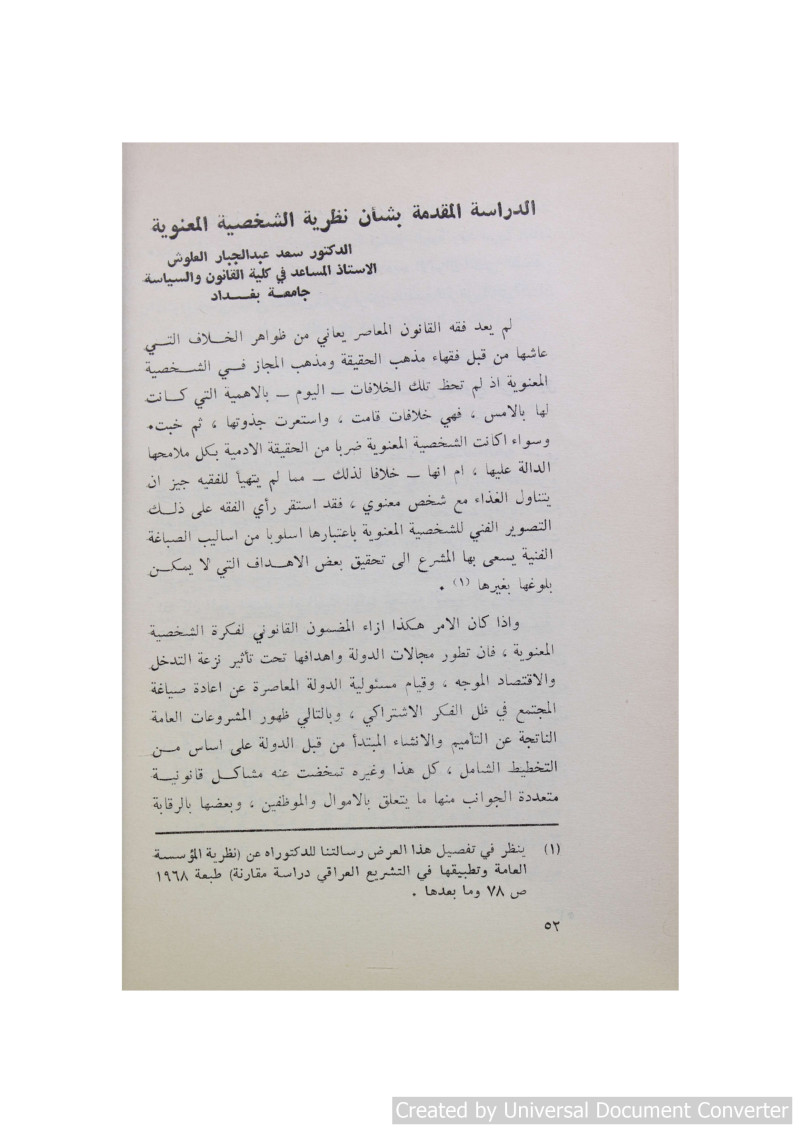 الدراسة المقدمة بشأن نظرية الشخصية المعنوية /