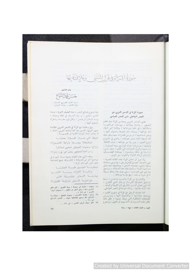 صورة المرأة في غزل المتنبي وعلاقته بها /
