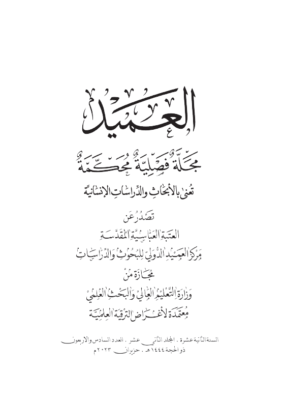 العميد : مجلة فصلية محكمة تعنى بالابحاث والدراسات الانسانية = AL-AMEED : Quarterly Peer-Reviewed Journal for Humanist and Studies / تصدر عن العتبة العباسية المقدسة مركز العميد الدولي للبحوث والدراسات.