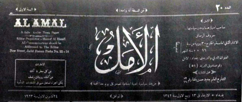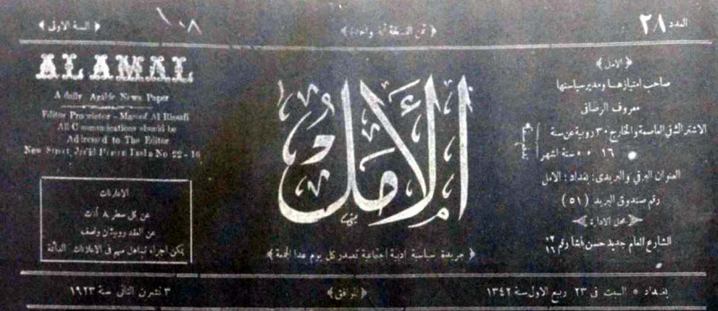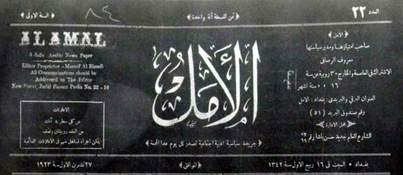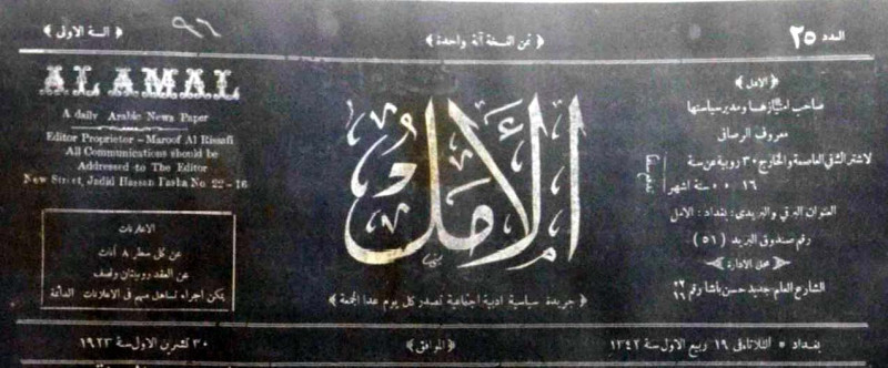 صاحب الامتياز ومدير سياستها : معروف الرصافي.