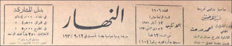 النهار (جريدة : بغداد، العراق : 1937)