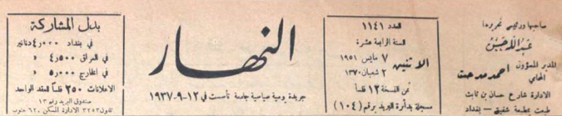 النهار (جريدة : بغداد، العراق : 1937)