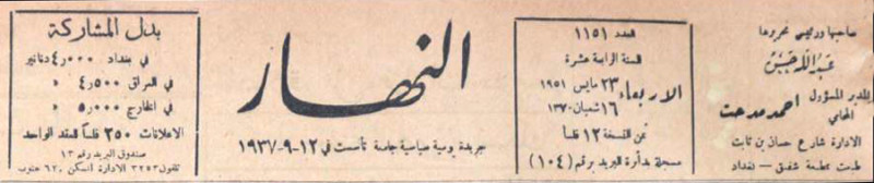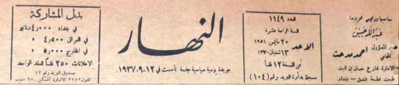 النهار (جريدة : بغداد، العراق : 1937)
