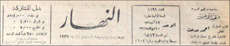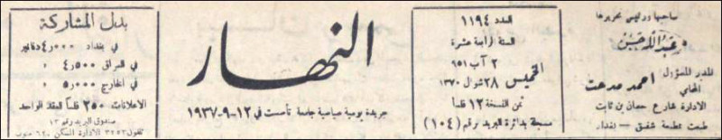 النهار (جريدة : بغداد، العراق : 1937)