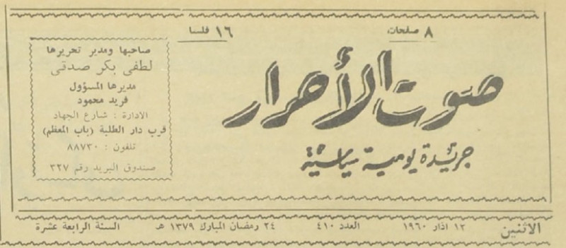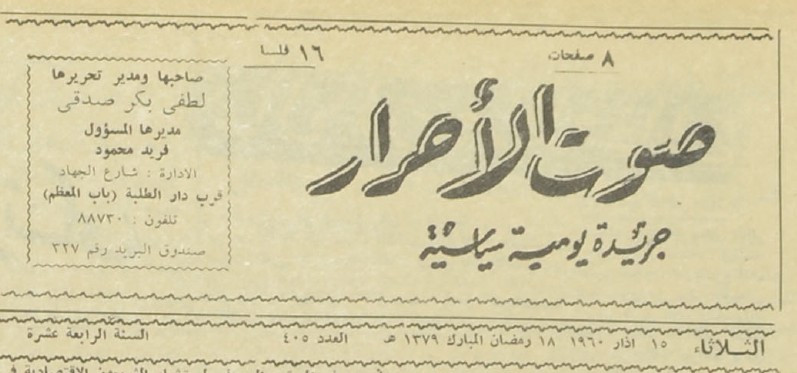 جريدة يومية سياسية جامعة : لسان حال حزب الاحرار.