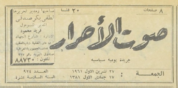 صاحبها ومدير تحريرها : لطفي بكر صدقي.