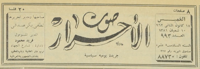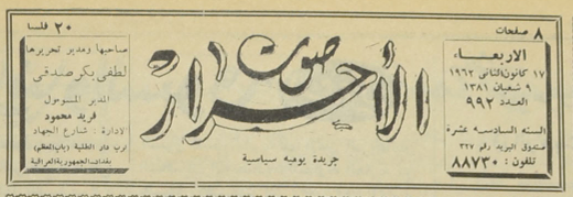 جريدة يومية سياسية جامعة : لسان حال حزب الاحرار.