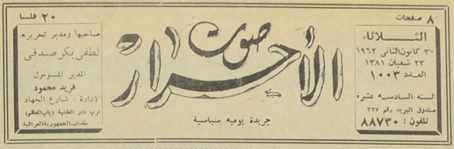 صاحبها ومدير تحريرها : لطفي بكر صدقي.