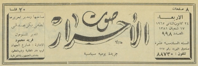 جريدة يومية سياسية جامعة : لسان حال حزب الاحرار.