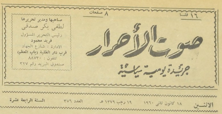 جريدة يومية سياسية جامعة : لسان حال حزب الاحرار.