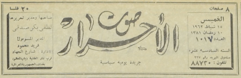 صاحبها ومدير تحريرها : لطفي بكر صدقي.