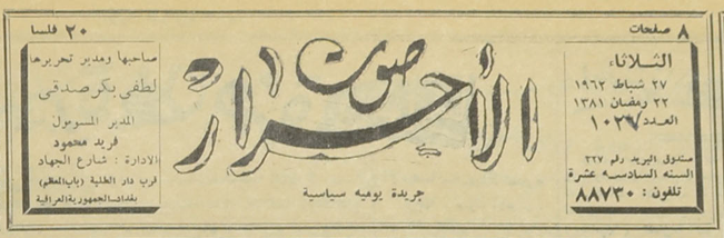 جريدة يومية سياسية جامعة : لسان حال حزب الاحرار.