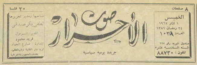 صاحبها ومدير تحريرها : لطفي بكر صدقي.