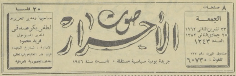 صاحبها ومدير تحريرها : لطفي بكر صدقي.