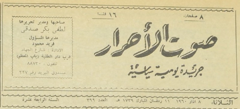 جريدة يومية سياسية جامعة : لسان حال حزب الاحرار.