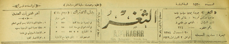 جريدة يومية سياسية عامة = AL-Thaghr : A Daily Newspaper