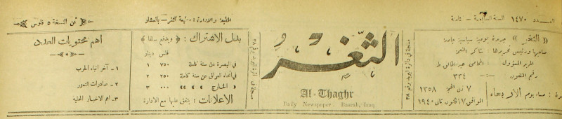 جريدة يومية سياسية عامة = AL-Thaghr : A Daily Newspaper