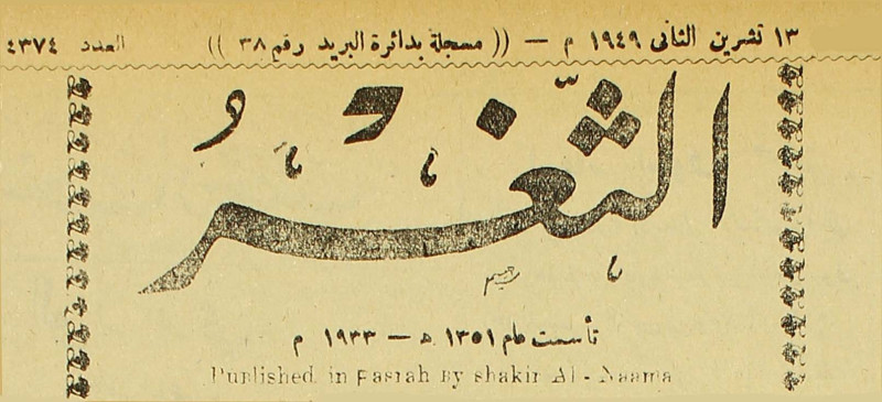 جريدة يومية سياسية عامة = AL-Thaghr : A Daily Newspaper