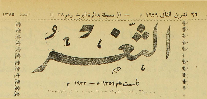 جريدة يومية سياسية عامة = AL-Thaghr : A Daily Newspaper