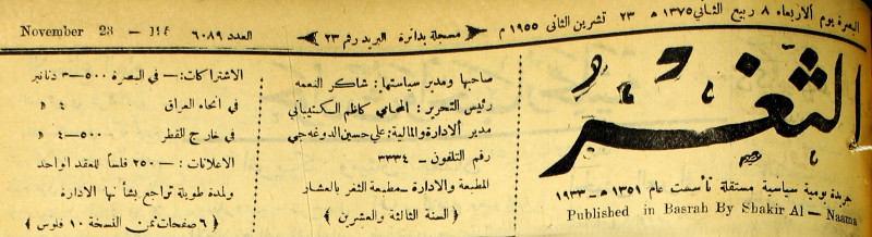 صاحبها ورئيس تحريرها : شاكر النعمة.