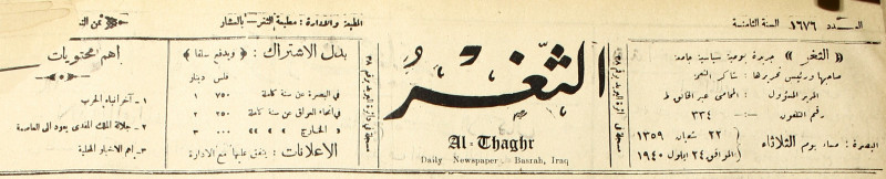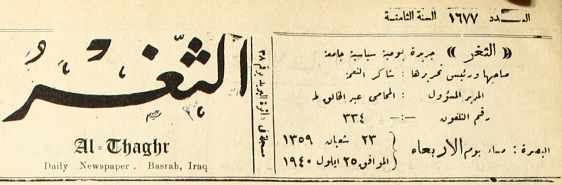 جريدة يومية سياسية عامة = AL-Thaghr : A Daily Newspaper