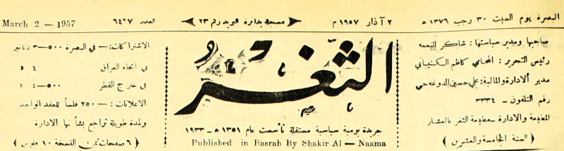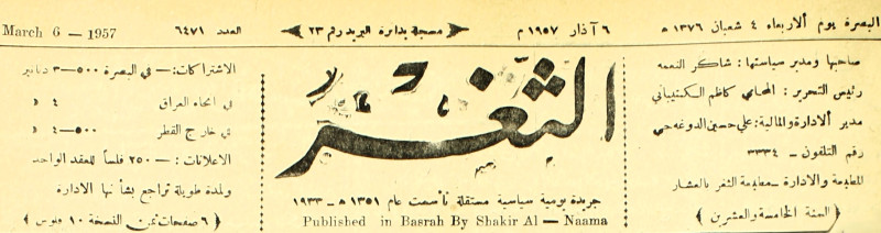 صاحبها ورئيس تحريرها : شاكر النعمة.