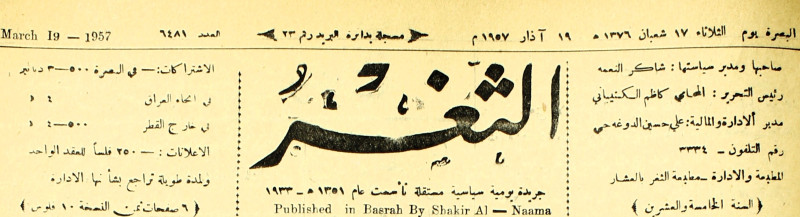 صاحبها ورئيس تحريرها : شاكر النعمة.