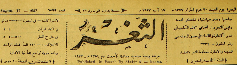 جريدة يومية سياسية عامة = AL-Thaghr : A Daily Newspaper