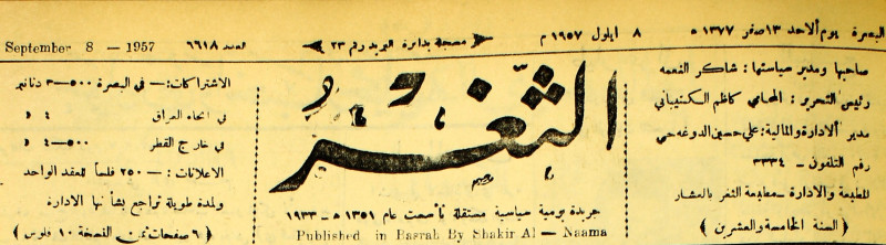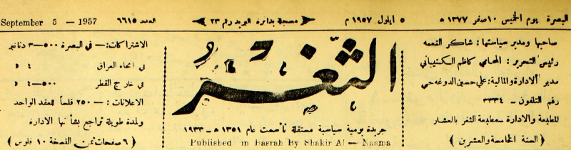 صاحبها ورئيس تحريرها : شاكر النعمة.