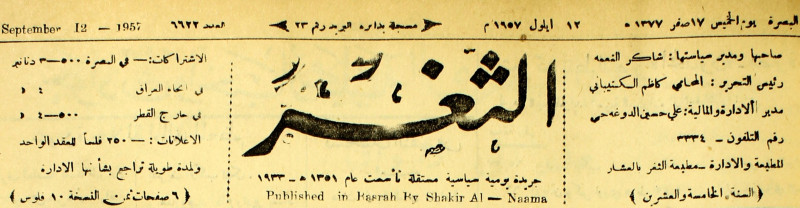 جريدة يومية سياسية عامة = AL-Thaghr : A Daily Newspaper
