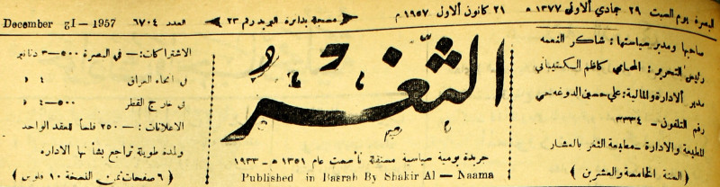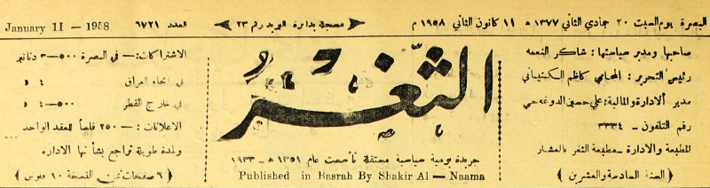 صاحبها ورئيس تحريرها : شاكر النعمة.