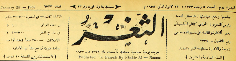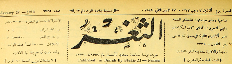 صاحبها ورئيس تحريرها : شاكر النعمة.