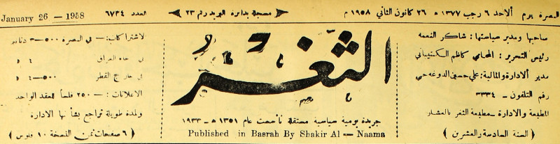 جريدة يومية سياسية عامة = AL-Thaghr : A Daily Newspaper