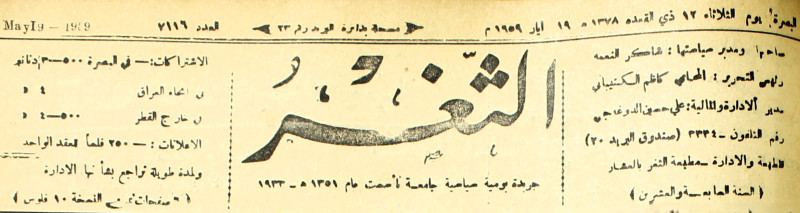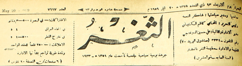 جريدة يومية سياسية عامة = AL-Thaghr : A Daily Newspaper