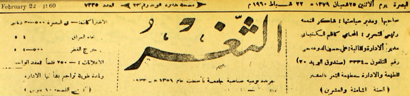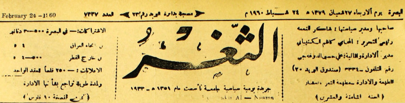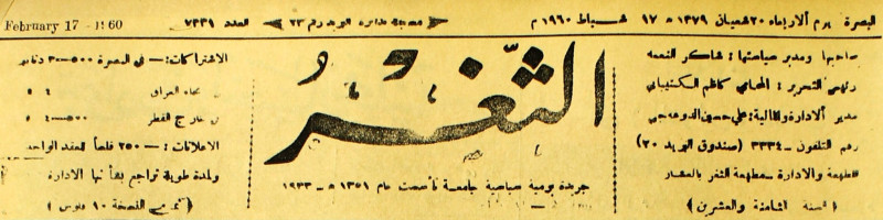 جريدة يومية سياسية عامة = AL-Thaghr : A Daily Newspaper