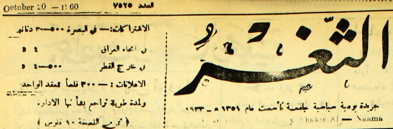 جريدة يومية سياسية عامة = AL-Thaghr : A Daily Newspaper