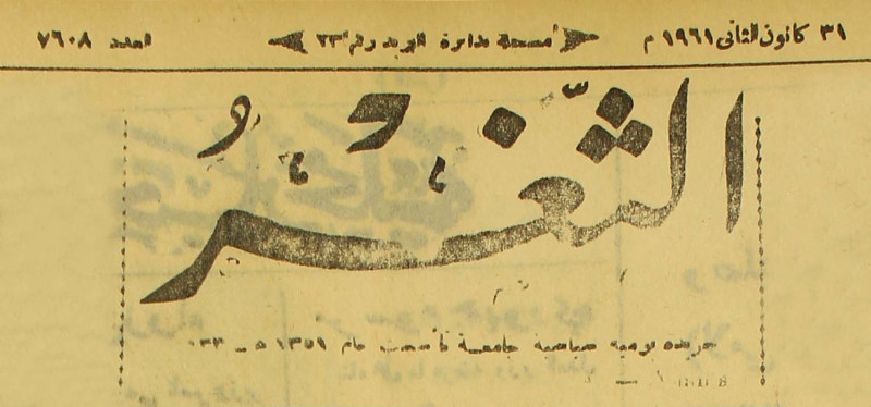 جريدة يومية سياسية عامة = AL-Thaghr : A Daily Newspaper