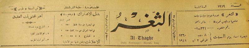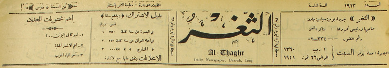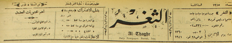 جريدة يومية سياسية عامة = AL-Thaghr : A Daily Newspaper