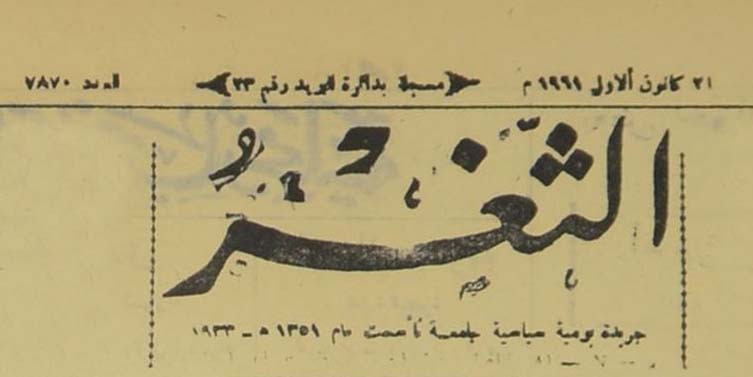 جريدة يومية سياسية عامة = AL-Thaghr : A Daily Newspaper