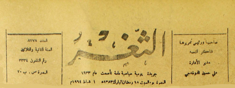 جريدة يومية سياسية عامة = AL-Thaghr : A Daily Newspaper