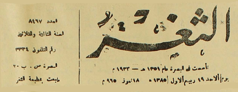 جريدة يومية سياسية عامة = AL-Thaghr : A Daily Newspaper