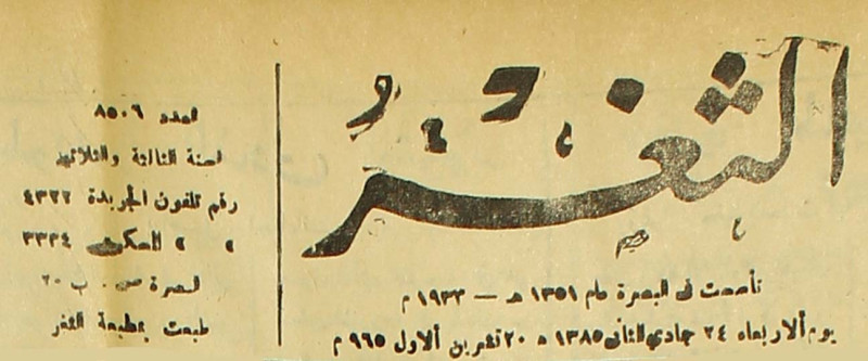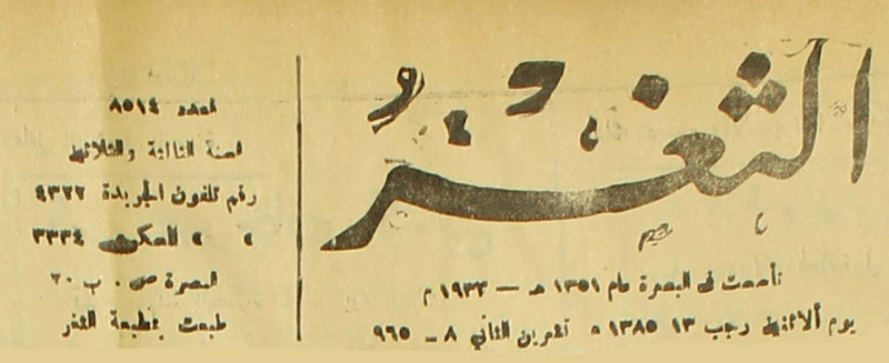 جريدة يومية سياسية عامة = AL-Thaghr : A Daily Newspaper
