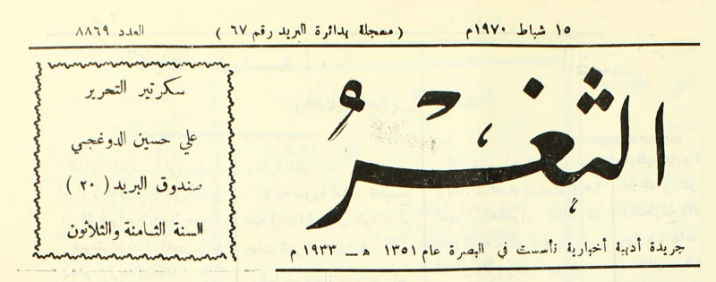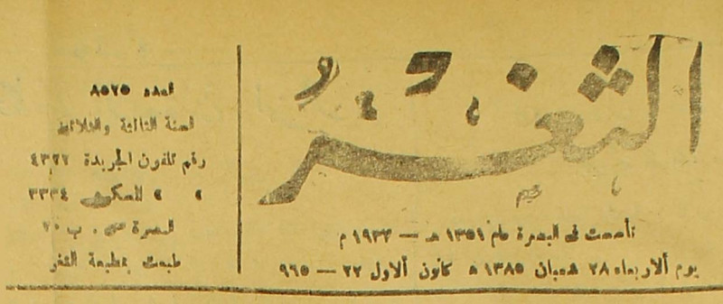 جريدة يومية سياسية عامة = AL-Thaghr : A Daily Newspaper