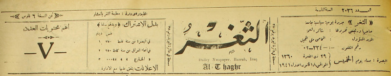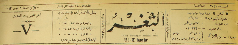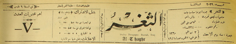 جريدة يومية سياسية عامة = AL-Thaghr : A Daily Newspaper